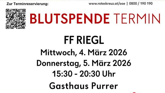 Am 4-5 März findet das Blutspenden beim Wirt am Riegl statt!